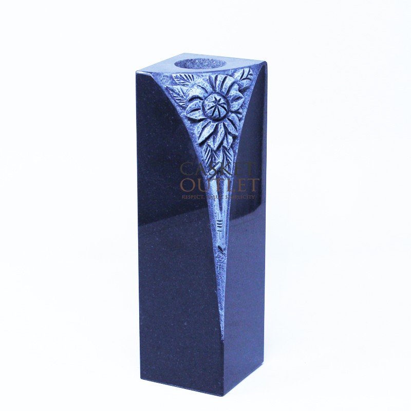 Black granite vase with flower shape carving design