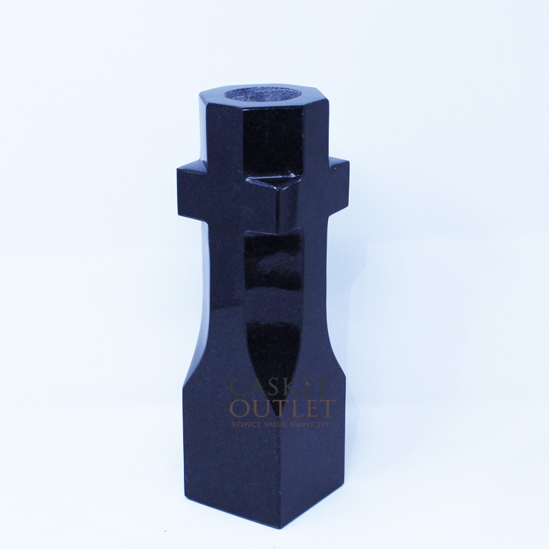 Black granite vase with cross shape carving design