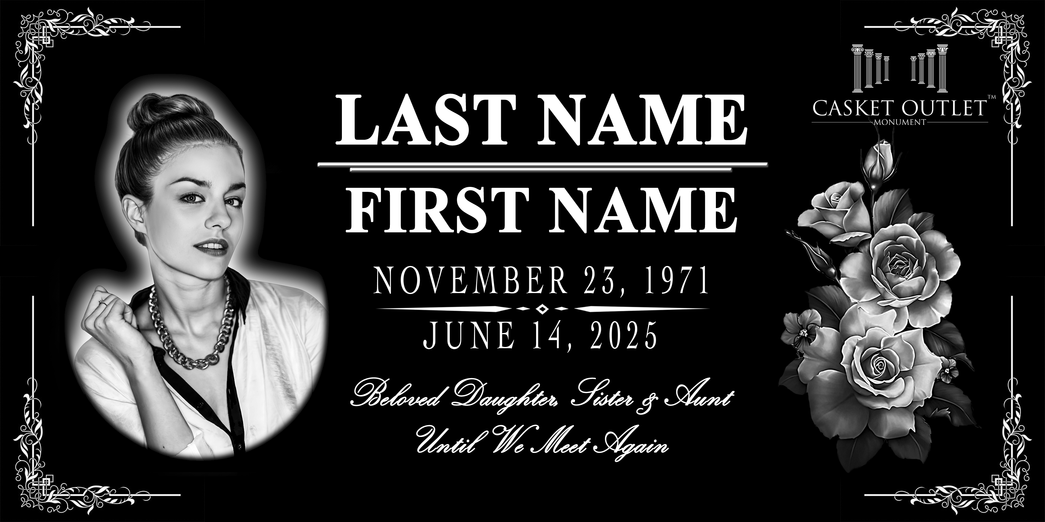 - Etching name, date of birth, date of death and inscription (unlimited)
